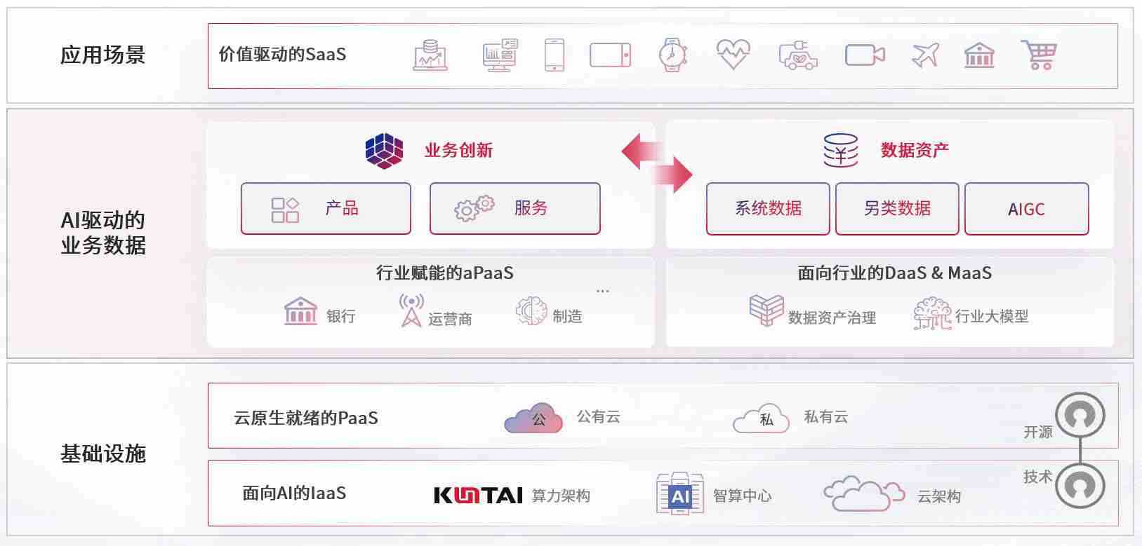 数字时代,,,,围绕企业数字化转型的关键要素,,,,008PG国际数码开创性的提出数云融合战略和技术体系框架,,,,着力在云原生、、数字原生、、AI原生和信创产业上架构产品和服务能力,,为处在不同数字化转型阶段的快消零售、、汽车、、金融、、医疗、、政企、、教育、、、、运营商等行业客户提供泛在的敏捷IT能力和融合的数据驱动能力,,,构建跨界融合创新的数字业务场景和新业务模式,,,,助力企业级客户建立面向未来的核心能力和竞争优势,,,全面推动社会的数字化、、、智能化转型升级。。。